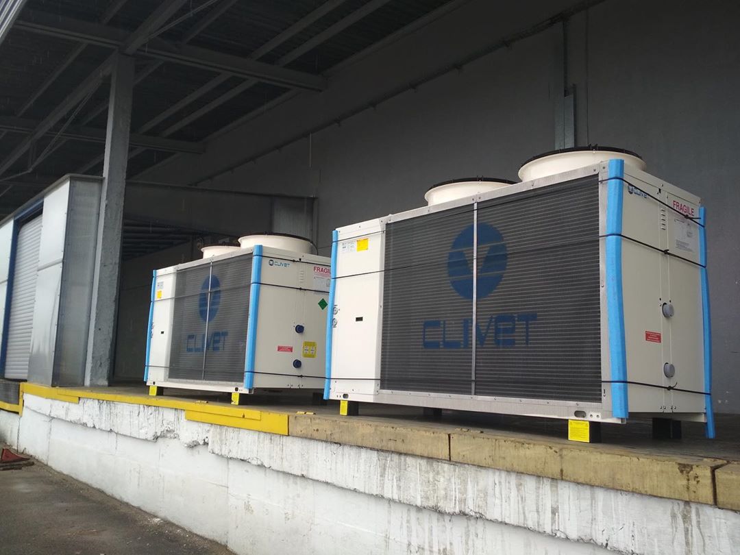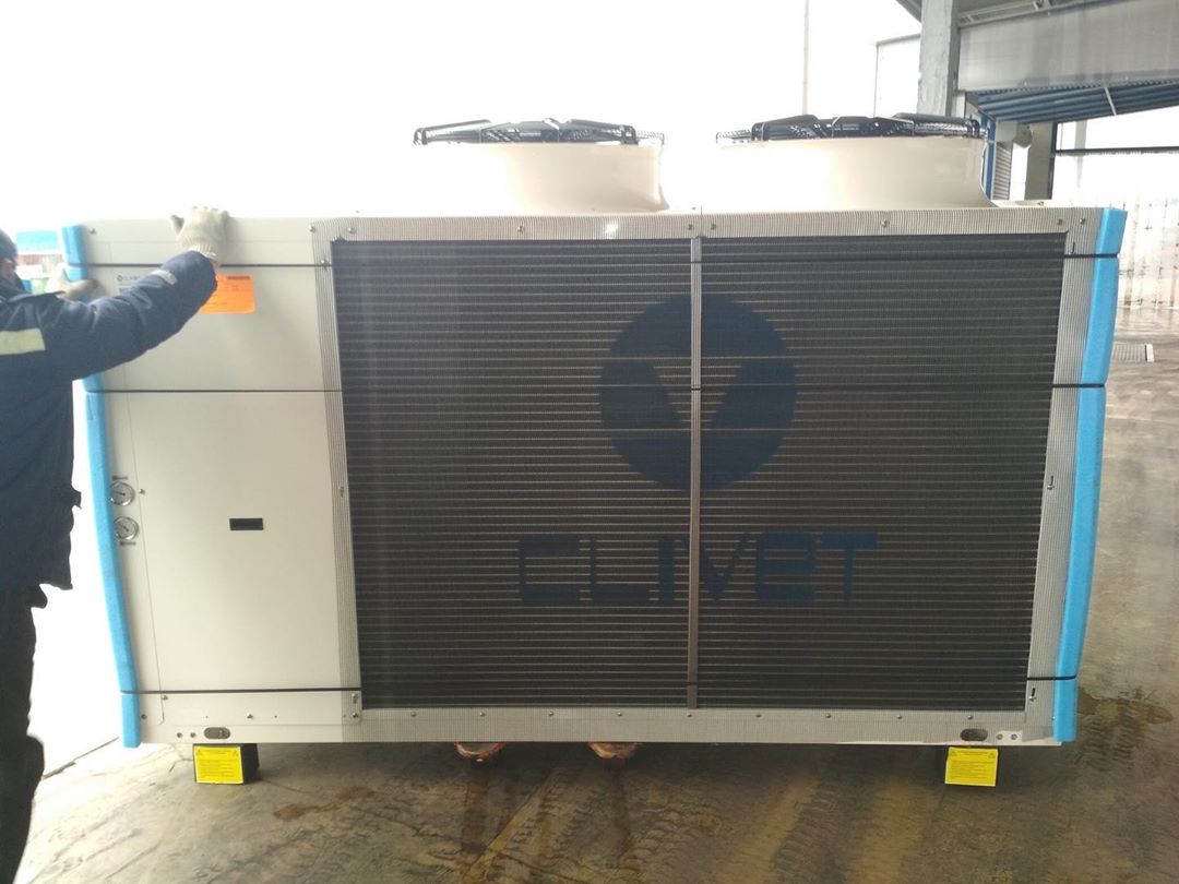 Установлены 2 чиллера воздушного охлаждения суммарной мощностью 162кВт с гидромодулем.